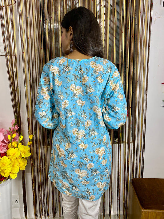 "ADR CHIKAN Embroidered Printed Cotton Lucknowi Chikankari Short Kurti"