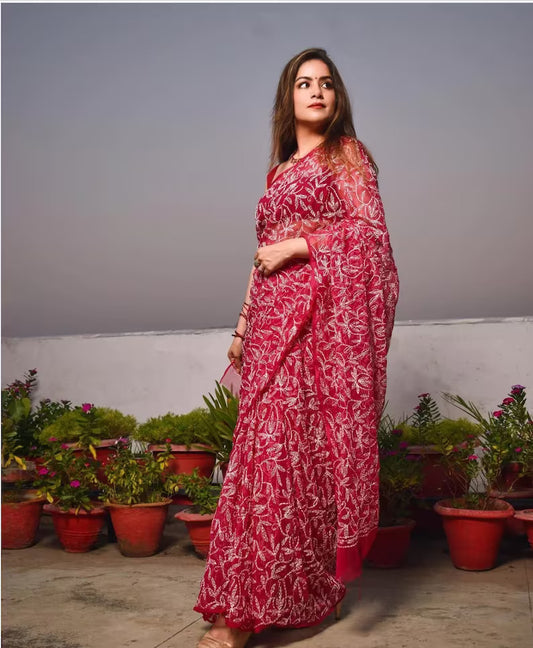 "ADR Women's Lucknow Chikankari Tepchi Work Georgette Saree (Color Chart Available)"
