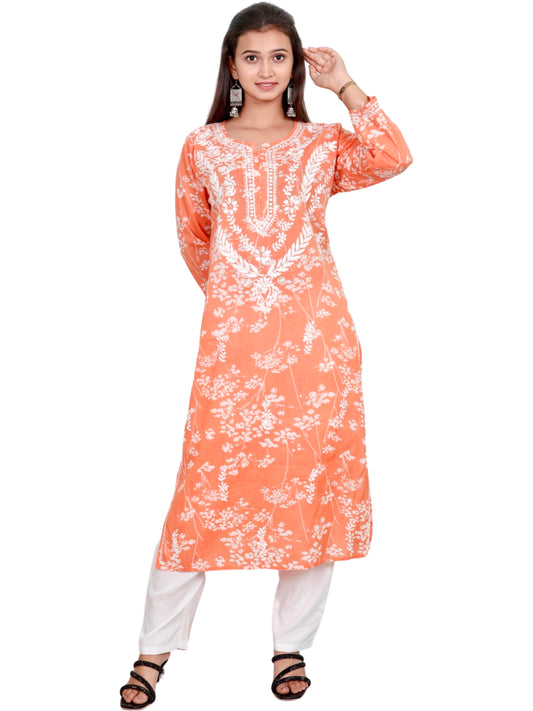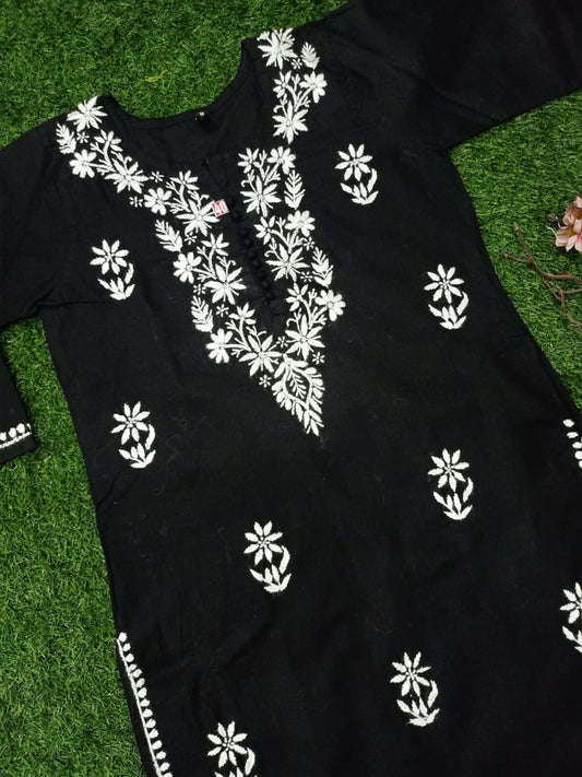 "ADR CHIKAN Celebrity Collection Lucknowi Chikankari Ghaspati Handwork with Handmade Quresia Buttons Modal Kurti (Color Chart Available)"