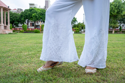 "Lucknowi Chikankari Embroidered Cotton Lycra Stretchable Pants β Elegance Meets Comfort"