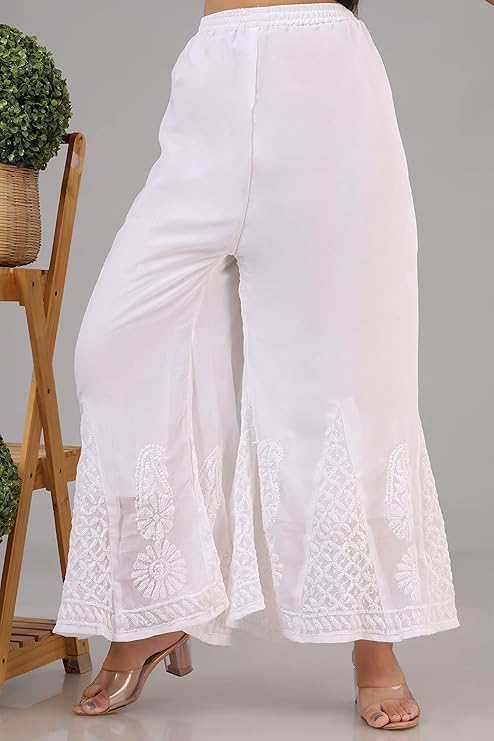 Women's Chikankari Dhoti-Style Pant Elegant Handcrafted White Ethnic Bottomwear