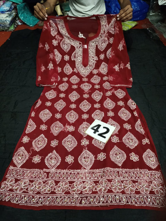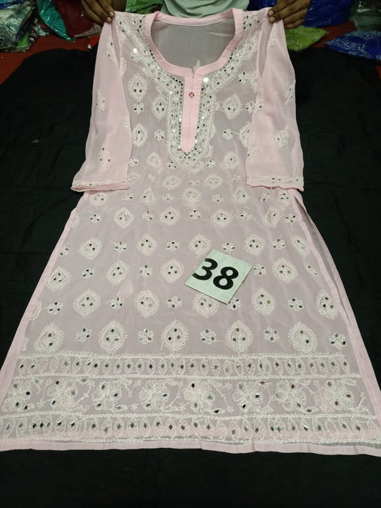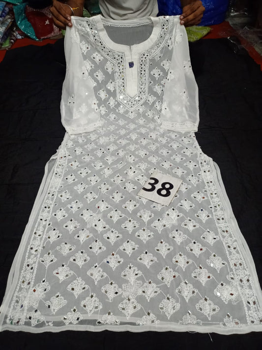 Lucknowi Chikankari Mirror Work Buta Jaal Kurti With Slip( L Size Only )