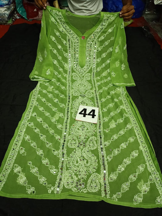 Lucknowi Chikankari Handwork Mirror Work Green Kurti With Slip( 2XL Size Only )