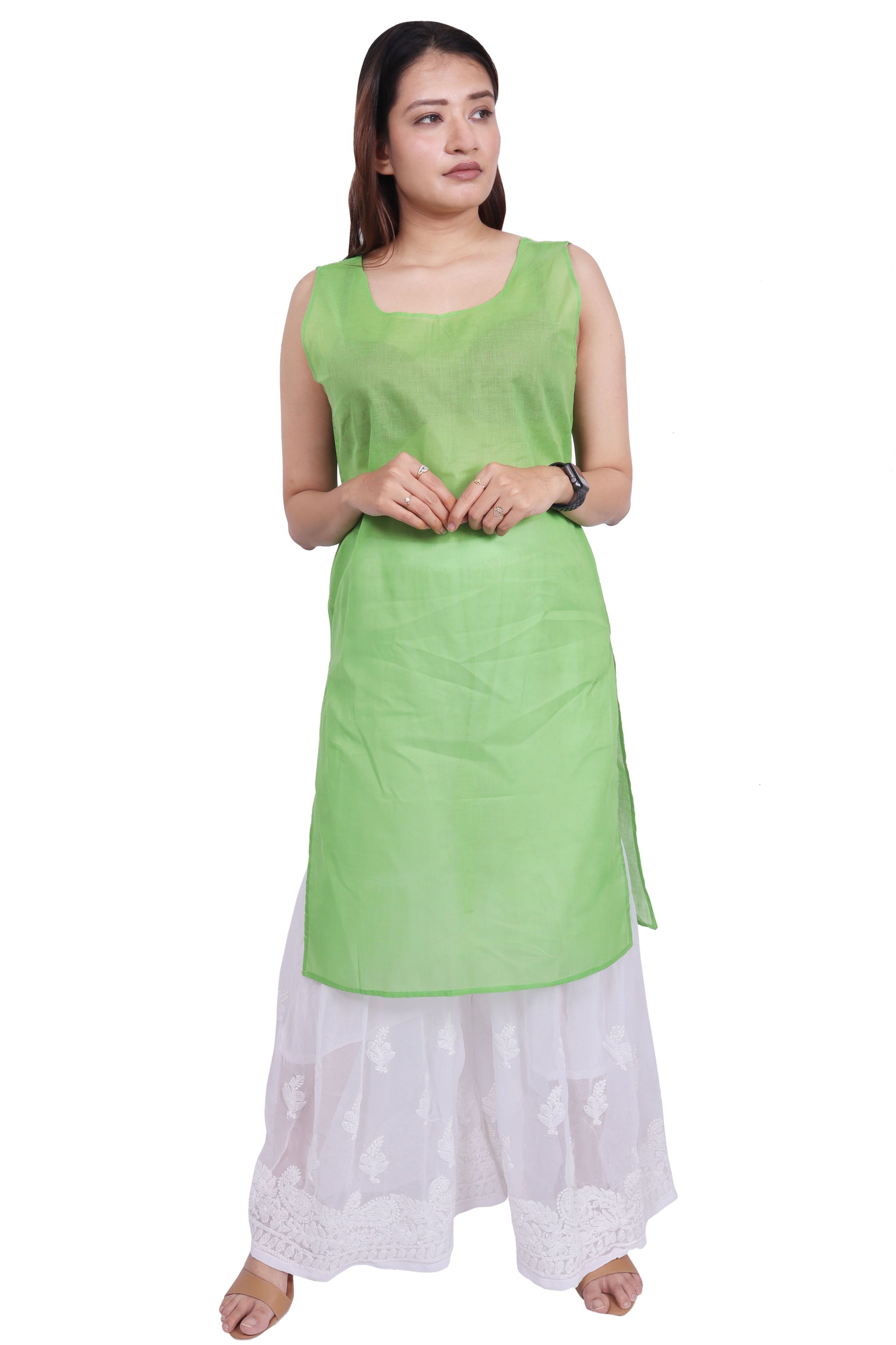 Designed for Chikankari Kurtis, our Camisole Inner slips provide a comfortable and seamless fit. Say goodbye to visible lines and awkward adjustments with this essential layering piece. Made with 100% breathable material, it's the perfect complement to your favorite Kurti.