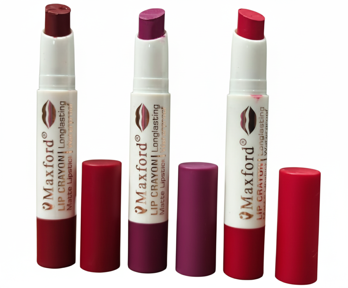 Indulge in rich, velvety color with Maxford Crayon Matte Lipstick pack of 3. Each smooth, long-lasting shade delivers intense pigmentation for a flawless, bold look. Formulated with nourishing ingredients, this set provides the ultimate combination of beauty and care for your lips.